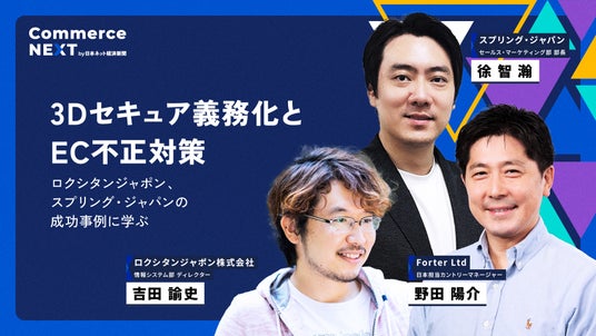 「3Dセキュア義務化とEC不正対策:ロクシタンジャポン、スプリング・ジャパンの成功事例に学ぶ」講師:Forter Ltd 日本担当カントリーマネージャー 野田陽介氏、ロクシタンジャポン 情報システム部 ディレクター 吉田諭史氏、スプリング・ジャパン セールス・マーケティング部 部長 徐智瀚氏
