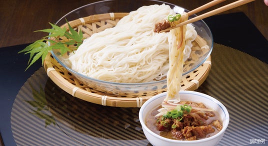 気温が上がるこれからの季節には、長崎角煮まぶしを汁に加えるそうめんとのアレンジがおすすめです。食欲が出にくい梅雨の時期にも食べやすく、さらには健康に重要なたんぱく質も摂取することができます。