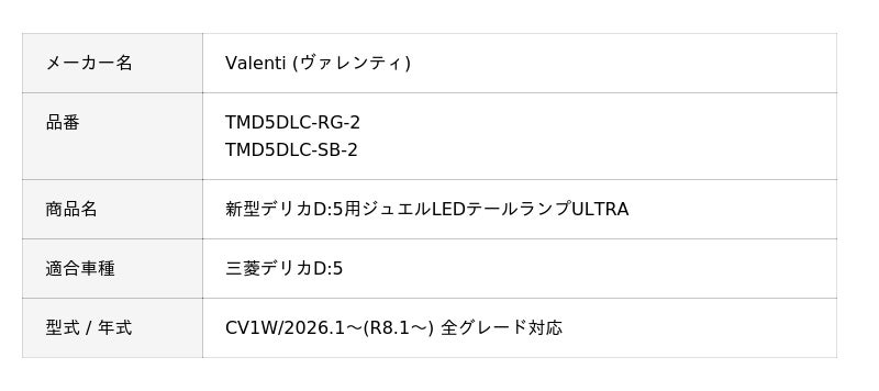 自動車用品メーカーの株式会社コラント(本社:岐阜県羽島市、代表:堀 雅利)が展開するLED製品を中心としたアフターパーツブランド「valenti (ヴァレンティ) 」から、三菱デリカD:5用ジュエルLEDテールランプULTRAが発売開始いたしました。