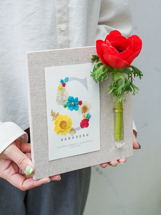 イニシャルに“押し花”を添えた、オリジナルフラワーアレンジが新登場。