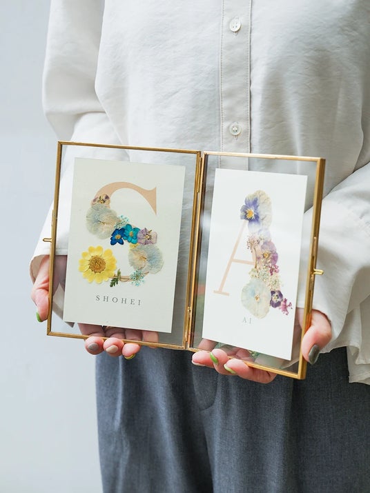 ご家族やご友人には、お名前のイニシャルに押し花を添えて。