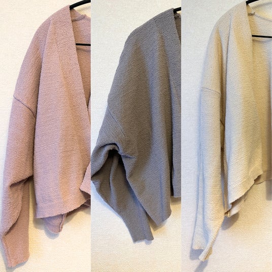 妊娠中の部屋着としてはもちろん、筆者は入院中肌寒い時に役に立ちました。ボタンやチャックが付いていないので赤ちゃんを抱っこする時も顔に当たるかな?と気にせずすぐに抱っこできるのが使いやすいポイント!モコモコしすぎず、丈も短めなので厚着感がない羽織ものです。
