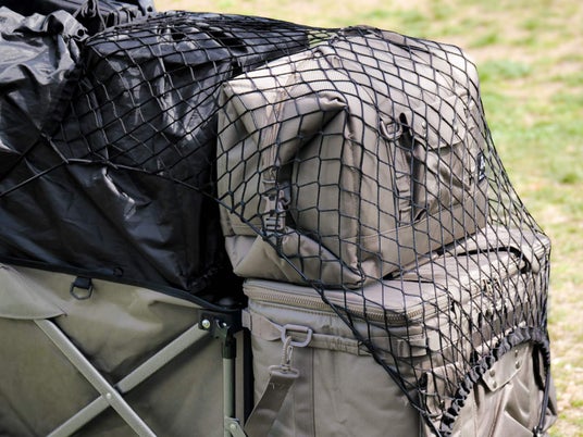 3. 落下防止ネットリアゲート部に積んだ荷物は付属ネットで安定固定。伸縮性の高いゴムバンドで、大型ギアもずれにくく、しっかりホールドします。