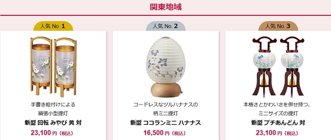 【関東地域】お盆提灯人気トップ3