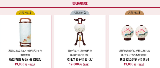 【東海地域】お盆提灯人気トップ3