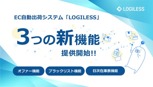 EC自動出荷システム「LOGILESS」を提供する株式会社ロジレス(本社:東京都品川区、代表取締役CEO:足立直之)は、EC事業者のさらなる業務効率化と販売促進を支援する3つの機能「オファー機能」「ブラックリスト機能」「日次在庫表機能」の提供を開始しました。これらの機能は「LOGILESS」をご利用のEC事業者様が、従来の機能に加えて追加でご利用いただける機能です。皆様が日々直面する課題を解決し、事業成長を後押しすることを目的として機能を拡充いたします。