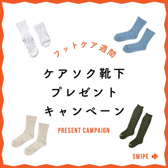 2.Instagramでケアソク(@caresoku)をタグ付けしたフットケアに関する投稿を募集。頂いた中から9名様を選出し、いずれかのケアソクシリーズを1足プレゼント。