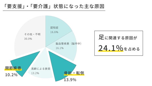 厚生労働省の調査によると、要支援・要介護状態になるきっかけは、多い順に、認知症(16.6%)、脳血管疾患(脳卒中)(16.1%)、骨折・転倒(13.9%)、高齢による衰弱(13.2%)、関節疾患(10.2%) … と続きます。