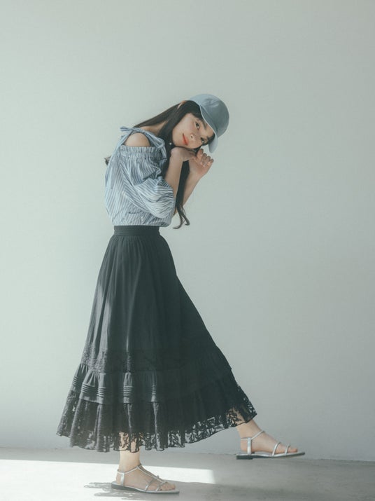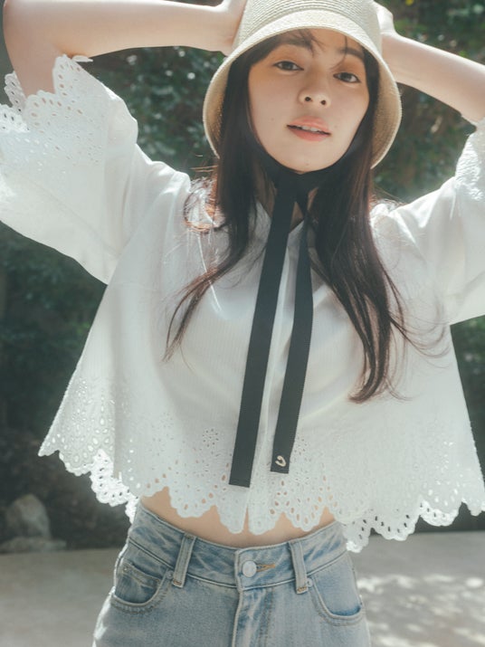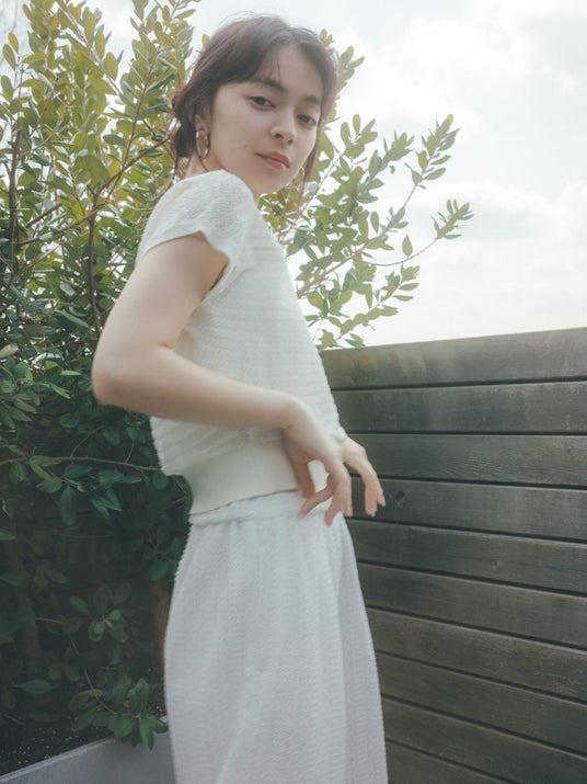 風にそよぐシトラスを思わせるグリーンのチェックブラウス、サマーニットには熟した果実のようなピンク・レッドを。トレンドのカットワーク刺繍のブラウスや、レーススカートは木漏れ日を抜ける風のように軽やかに揺れます。