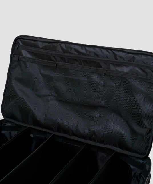 小物や保冷剤の収納に適した蓋裏の大小4個のポケットやベルクロ固定式の仕切りも4枚備え荷物のサイズに応じて固定位置を調節できます。