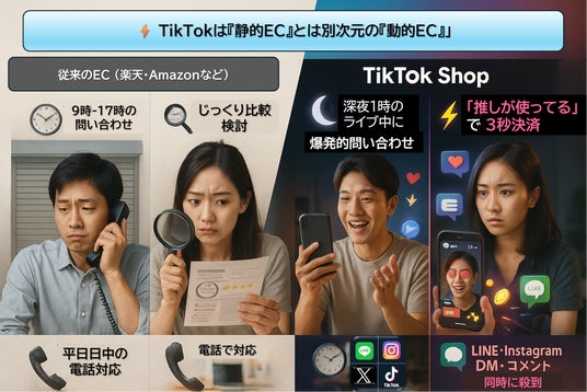 「TikTokでバズった瞬間の1,000件一斉問い合わせに即対応できる体制があるかどうかで、今後のEC勝ち組・負け組が決まる。旧来型の人間コールセンターに固執している企業は確実に取り残される」との声も業界内から聞かれます。