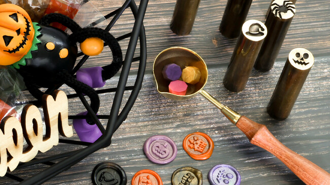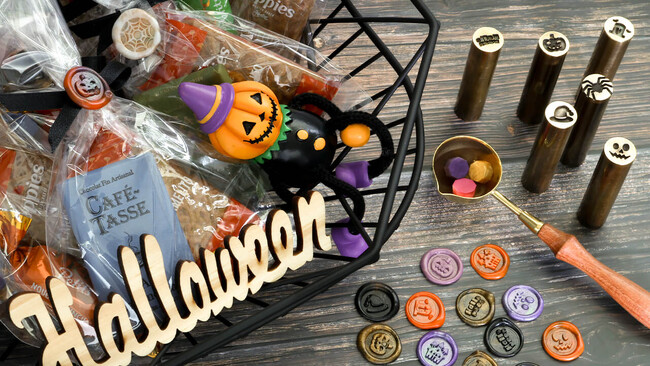 ハロウィンのお菓子袋に可愛いアクセントを2023ハロウィンをもっと楽しめるよう、ハロウィンデザインのプチシーリングスタンプが新たにラインナップされました。例えば、お菓子を詰めた小袋にリボンを付けてシーリングするだけでとても可愛らしくアレンジができて、写真映え間違いなしです。