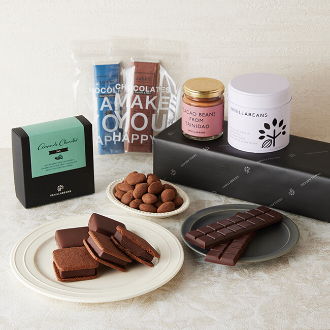 商品名:「公式オンラインショップ限定 リニューアル記念セット -プレミアム-」VANILLABEANSのご利用が初めての方にイチオシの「ショーコラ&パリトロお試しセット」が入った、ボリュームたっぷりのプレミアムアソートです。カカオ豆の選定や焙煎からこだわる「タブレットショコラ」やスプレッドタイプの「パンが美味しくなるチョコレート」、カリッとナッツが香ばしい「アマンドショコラ」など当店自慢のスイーツをお楽しみいただけます。