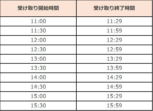 ※時間選択は「受け取り・お支払いの設定」ページの「受け取り時間を設定する」ボタンよりご選択いただけます。