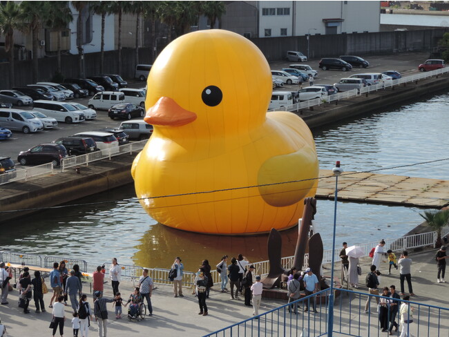 オランダの芸術家フロレンタイン・ホフマン氏が制作した、巨大なアート作品「ラバー・ダック」。パブリックアート