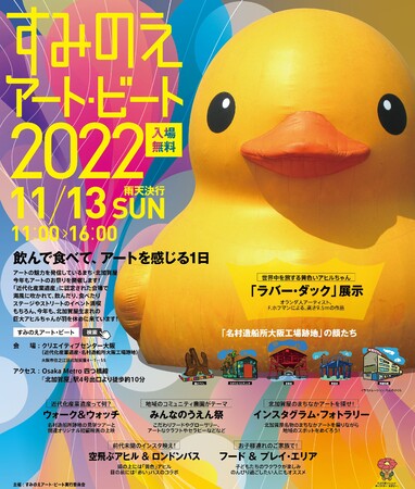 千島土地株式会社千島土地株式会社(大阪市住之江区)は、11月に開催するイベント「すみのえアート・ビート 2022」(開催日:2022年11月13日(日)、会場:クリエイティブセンター大阪)で販売するラバー・ダックオリジナルグッズの事前注文の受付を、BEENOS Entertainment株式会社が提供するモバイルオーダー・決済サービス「narabee(ナラビ―)」で開始いたしました。