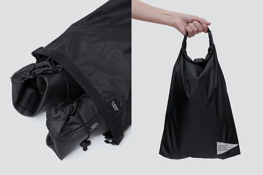 防水加工が施されたドライバッグも付属し、濡れたまま収納してバッグ等に詰め込むことも出来るので外出先で使用して持ち帰る際も安心です。