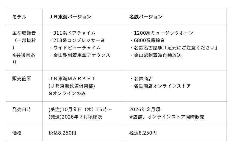 東海旅客鉄道株式会社2025/10/9 JR東海と名鉄が「鉄道の日」コラボ!両社の代表的な車両の走行音やアナウンスを収録した大音量の目覚まし時計「ライデン」が登場!JR東海バージョンの受注は【10/9 15:00】から!