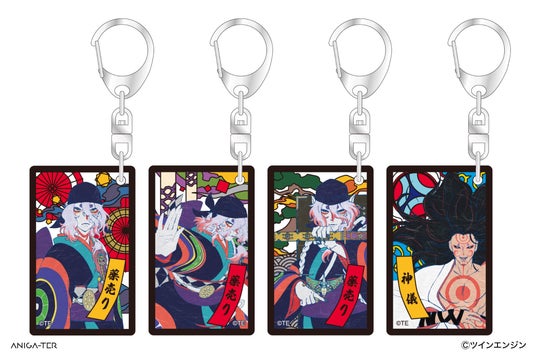 「薬売り」「神儀」のイラストを、鮮やかな色彩の和モダンテイストでデザインしたアクリルキーホルダー。