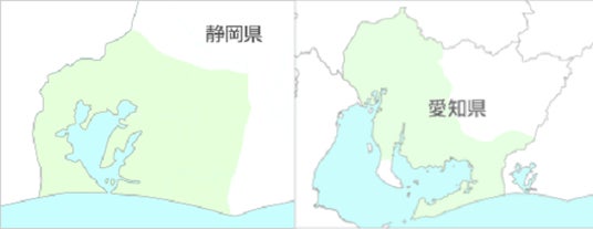 静岡県内の新エリア(左)と愛知県内の全対応エリア
