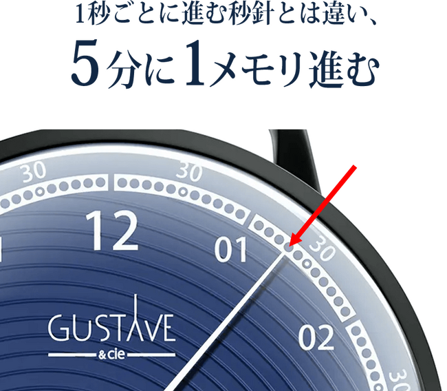 小刻みに動く秒針や細かい時間を表示する短針がないため、時計を見るだけでストレスフリーになります。