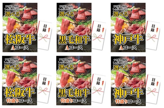 ご家族の好みや、食べたい時期に合わせて選べるので、普通のお肉をもらうよりも特別感があります。「幹事さん、気が利いてる!」と思われること間違いありません。商品のバリエーションは、松阪牛・神戸牛・黒毛和牛の3種類×お肉の量2種類の6種類。価格も分かりやすいので、ご予算に応じてお選びください。