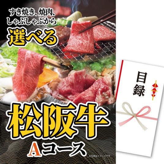 パネル付き目録 選べる松阪牛Aコース 11,000円(税込)人気ブランド牛の松阪牛をすき焼き、焼肉、しゃぶしゃぶの3種類から選べます。