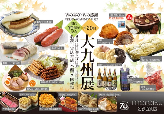 株式会社名鉄百貨店食欲の秋にふさわしい九州のグルメが大集結!定番の人気商品や、名鉄でしか食べられないオリジナル商品、秋の味覚“栗”を使ったスイーツなど幅広く取り揃え。九州の味覚を存分に味わえるこの機会をお見逃しなく!