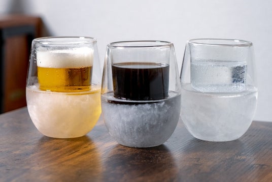 透明なダブルウォールグラスの間に特殊な冷却ジェルを挿入。その冷却ジェルが凍ることで、飲み物を薄める事なく冷やすことができる画期的なグラスです。