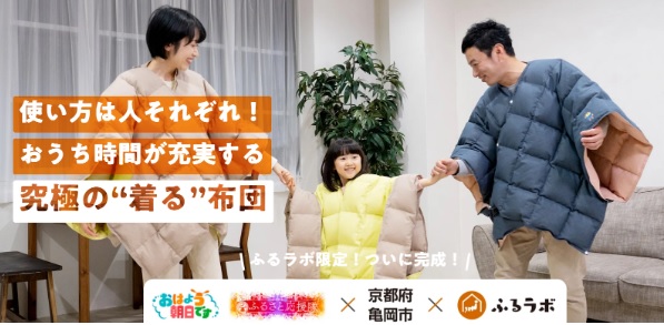 朝日放送テレビ株式会社(本社:大阪市、代表取締役:山本 晋也)の朝の情報番組「おはよう朝日です」は、京都府亀岡市との協働で、寝具専門店の技術を活かした「究極の"着る"布団」を開発いたしました。本日12月22日(木)より、ふるさと納税サイト「ふるラボ」(同社運営)にて限定返礼品としてふるさと納税の受付を開始いたします。