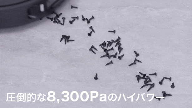 業界最強8,300Paの吸引力を誇り、ネジさえ一気に吸い込むハイパワー!フローリングやカーペットの隙間に潜んでいる、普段気付かない埃や髪の毛を一本も逃さず徹底吸引!毎日が爽快で清潔感あふれるものになります。