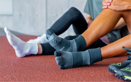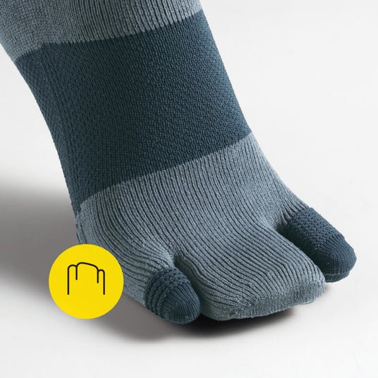 自然と小指に意識が向き感覚が向上。 指全体で地面をとらえる事ができ、従来の靴下よりも運動時の重心バランスが安定します。足への負荷が分散することで、