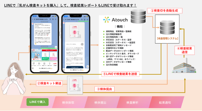 株式会社ミルテル(本社:広島県広島市、代表取締役社長:加藤 俊也 以下、ミルテル)は、もっと手軽にリスク検査サービスを提供することで、病気の早期発見を促し健康な方を1人でも増やすべく、検査キット購入から結果報告までLINEで簡単に完結することを目的として、LINEで簡単決済できる「Atouch」の導入にいたりました。