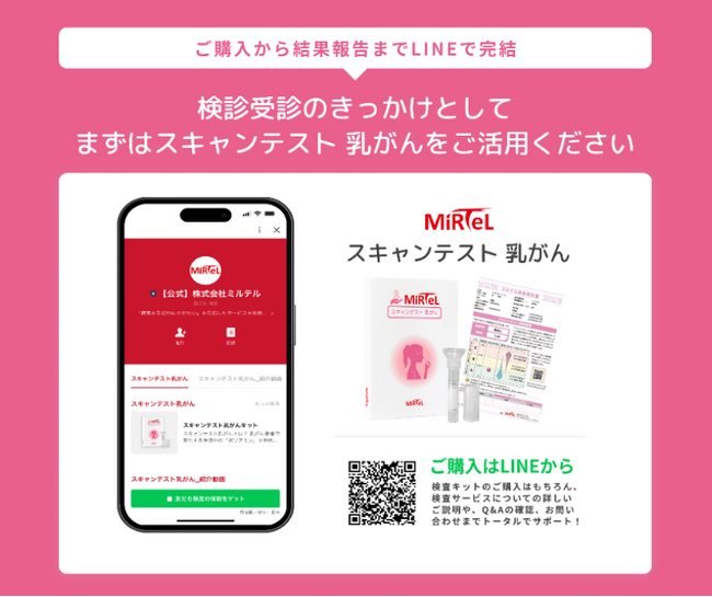 株式会社ミルテル(本社:広島県広島市、代表取締役社長:加藤 俊也)はこの度、乳がんリスク検査 「スキャンテスト 乳がん」をLINE上で 販売を開始いたしました。