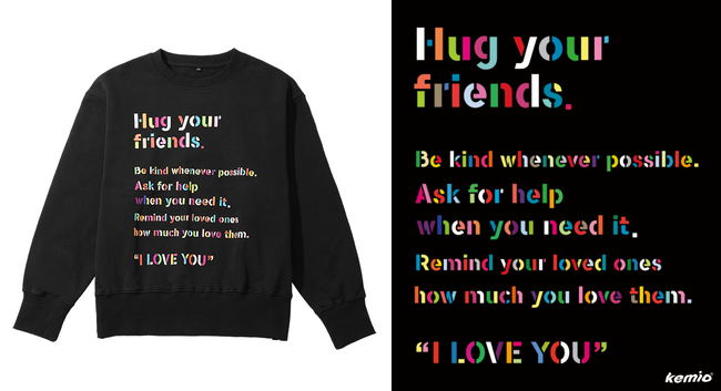 kemioからのメッセージが書かれたスウェット。
