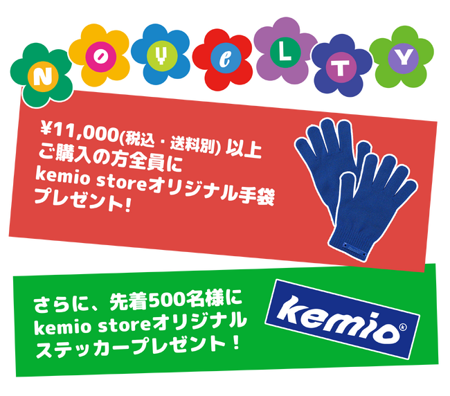 2.先着500名様に、kemio storeオリジナルステッカーをプレゼント。