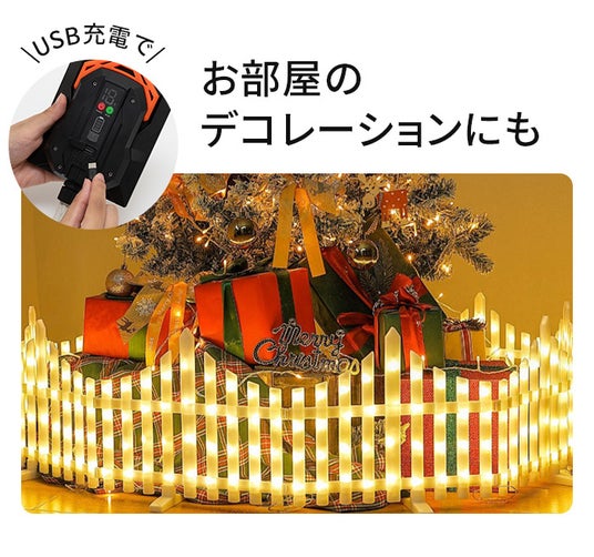 昼は白色のかわいらしいフェンスとして、夜は自動点灯で幻想的なイルミネーションに。景観に自然と馴染みます。連結して長さを調整できるので、お好みの長さで使用できます。