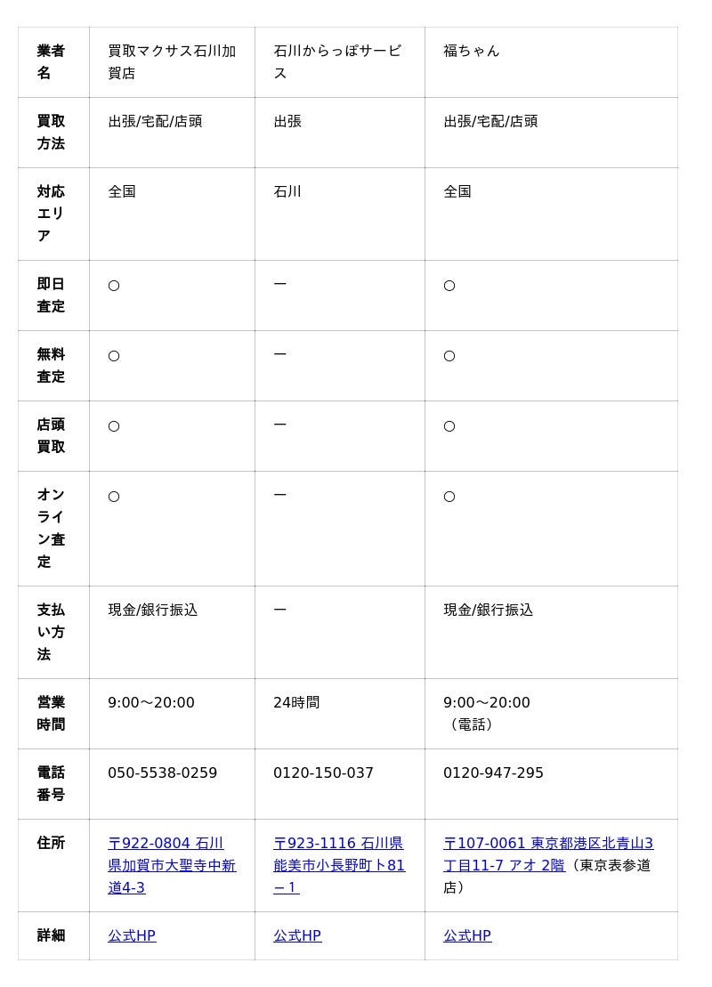 加賀市の出張買取サービスランキング10選では、