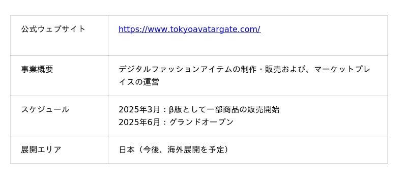 - デジタルファッション事業:デジタルファッションマーケットプレイス「TOKYO AVATAR GATE」の運営