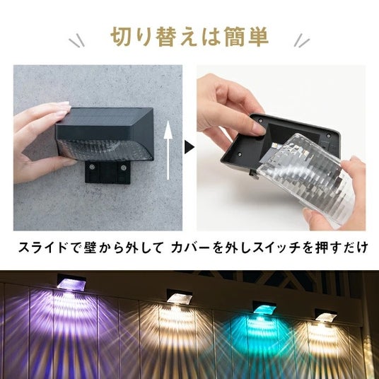 点灯のカラー・モードの切り替えはスイッチひとつの簡単操作。スイッチは本体のカバーに守られているので、雨の日も安心です。