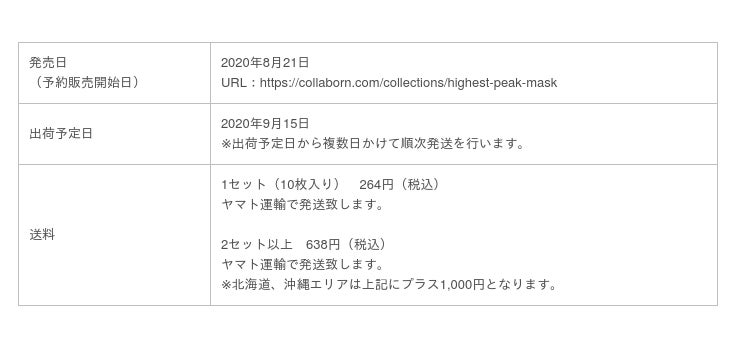 販売サイトはこちら:https://collaborn.com/collections/highest-peak-mask