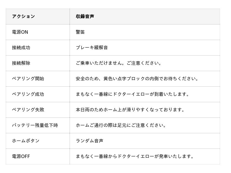 ※ホームボタン押下時のランダム音声は、T4編成の最終運行日となった2025年1月29日の東京駅での実際の放送を再現した音源を数パターン収録しております。