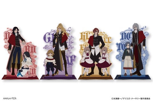 キャラクターカラーをベースにアンティーク調にデザインしたアクセサリースタンド。「デリコ家」、「フラ家」、「ロルカ家」、「クラシコ家」の全4種。