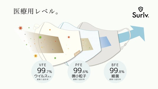 https://suriv.jp/pages/surivx_cp25高機能マスク SurivXSuriv|スリーヴは、“逆境をはね返す”という想いを込め、高性能フィルターや抗ウイルス素材などを搭載した、新しい時代のマスクです。