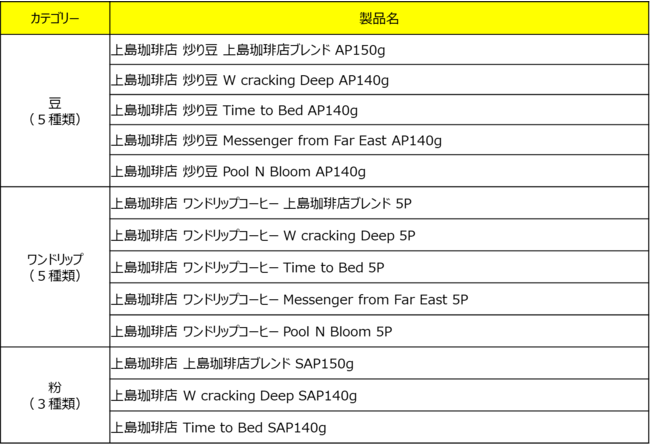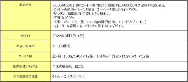 ■『上島珈琲店』レギュラーコーヒー製品概要・製品ラインアップ (豆、ワンドリップ、粉)