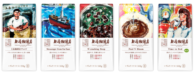 こうした消費者動向を背景に、この度、大人のための上質なコーヒー専門店『上島珈琲店』の味わいをご家庭でお楽しみいただけるブランドを立ち上げ、「創業」「産地」「焙煎」「抽出」「シーン」の5つの“ストーリー”を楽しめる5種類のブレンドを豆、ワンドリップ、粉の3カテゴリーで製品化します。