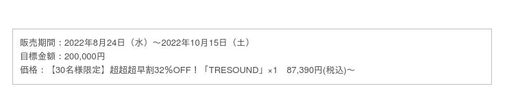 2022年8月24日(水)より、応援購入サービスGREEN FUNDINGにて、Bluetoothスピーカー「TRESOUND」の先行販売を開始しました。