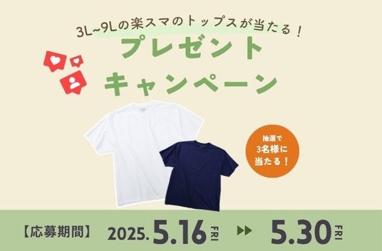 https://www.bigsize.co.jp/ )を運営する株式会社マンチェス(本社:岐阜県岐阜市、代表取締役:高見澤 聡)は、2025年5月16日(金)~5月30日(金)まで、公式Instagramにて、オリジナルブランド「楽スマ」のトップスが当たるプレゼントキャンペーンを開催を発表しました。