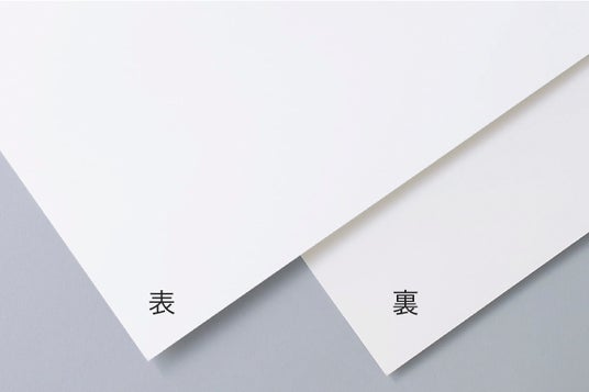 パッケージ用紙「アスカF」の表と裏の用紙イメージ/古紙パルプ100%の再生紙