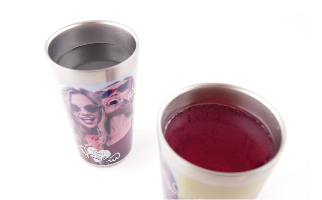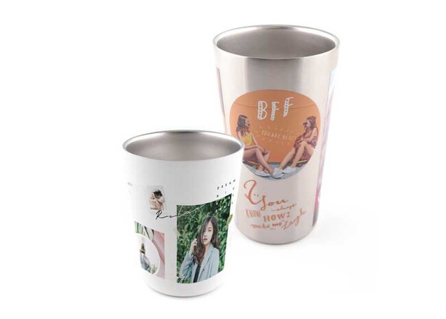 ▲人気のステンレスタンブラーに360度フルカラープリントできるオリジナルタンブラーお気に入りの写真・イラスト、名入れなどをタンブラーにぐるっと全面プリント可能です。他では作れないオリジナリティあふれるタンブラーを1個から作成頂けます。